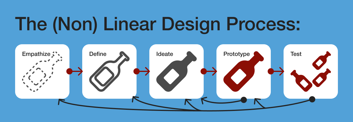 Below is a visual outlining how I arrived at my current solution. Yes, of course, sometimes it was back to the drawing board (aka the Ideate phase) or even further back— depending on testing results and internal feedback on designs.
