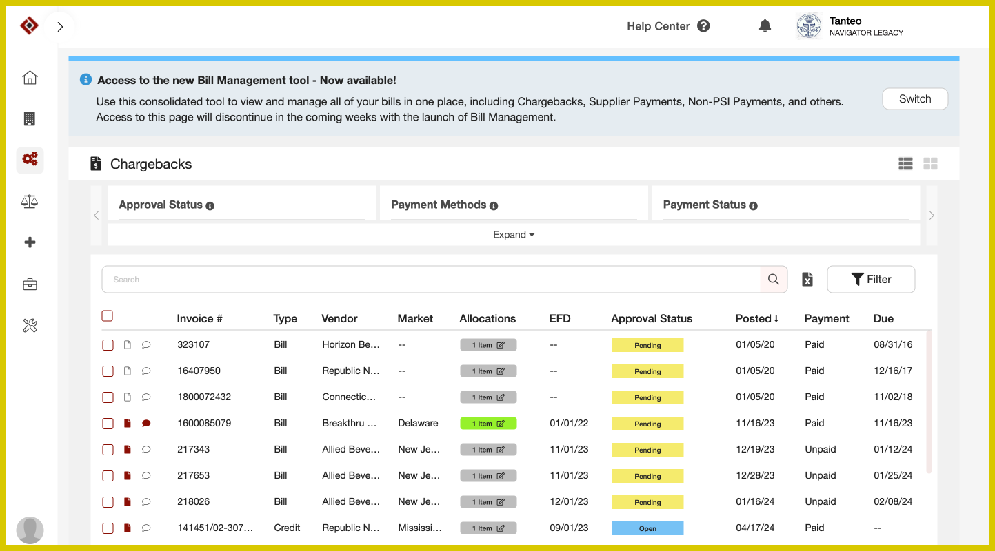 However, after announcing Bill Management, the Business Team noted that suppliers did not stop using chargebacks. This led to the assignment of figuring out why and how to succeed in this conversion. That’s when the UX Team stepped in and began researching.