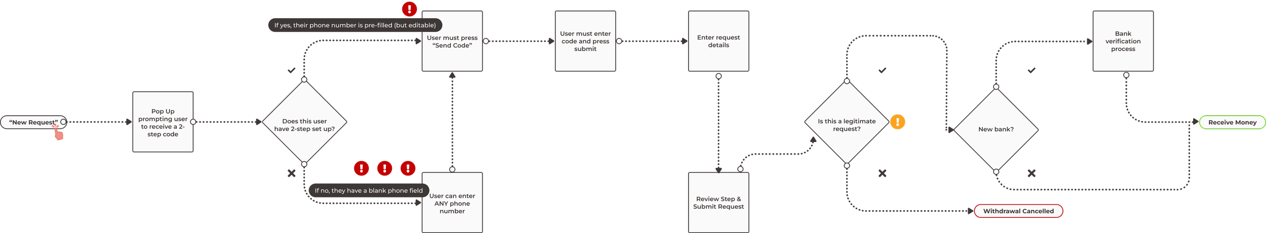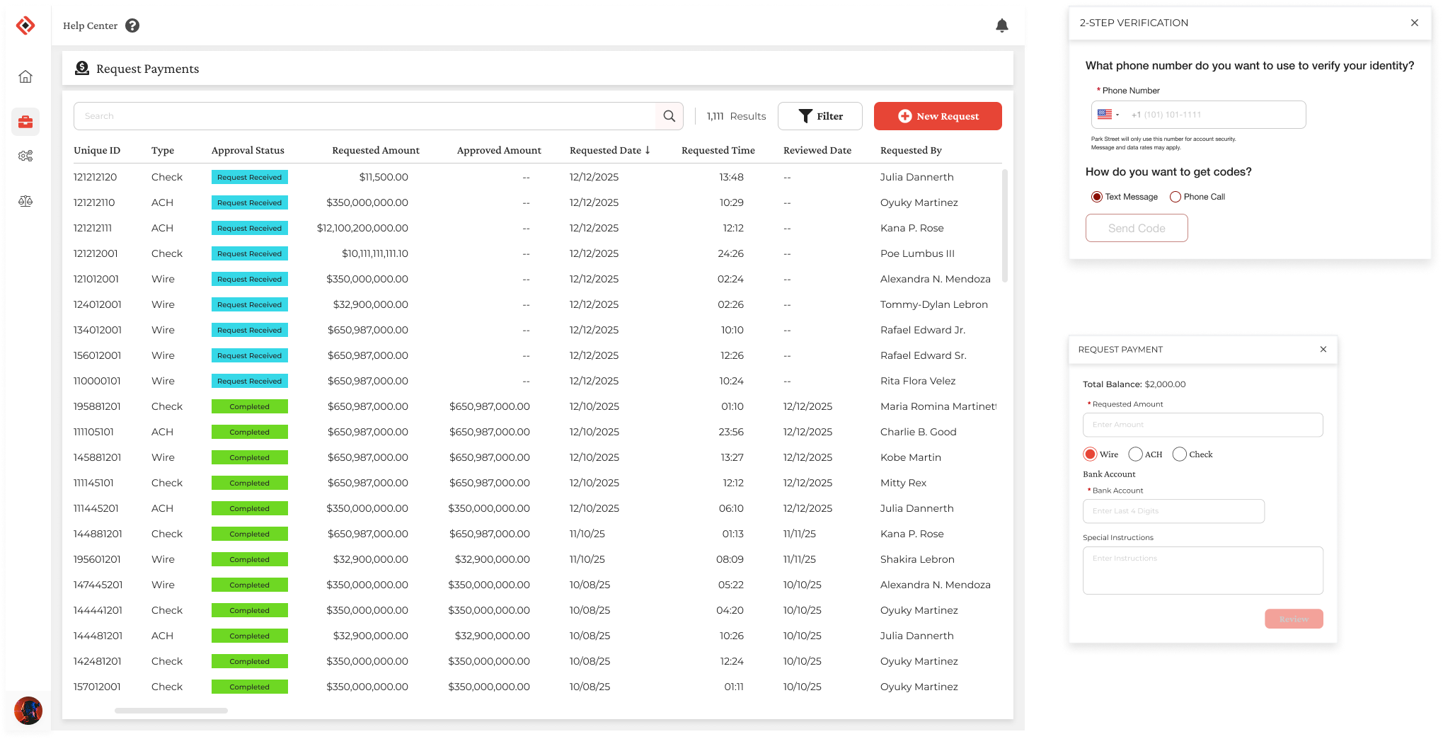 When a user would request money, they were prompted to receive a 2-step verification code. However, they could enter any phone number to receive it.